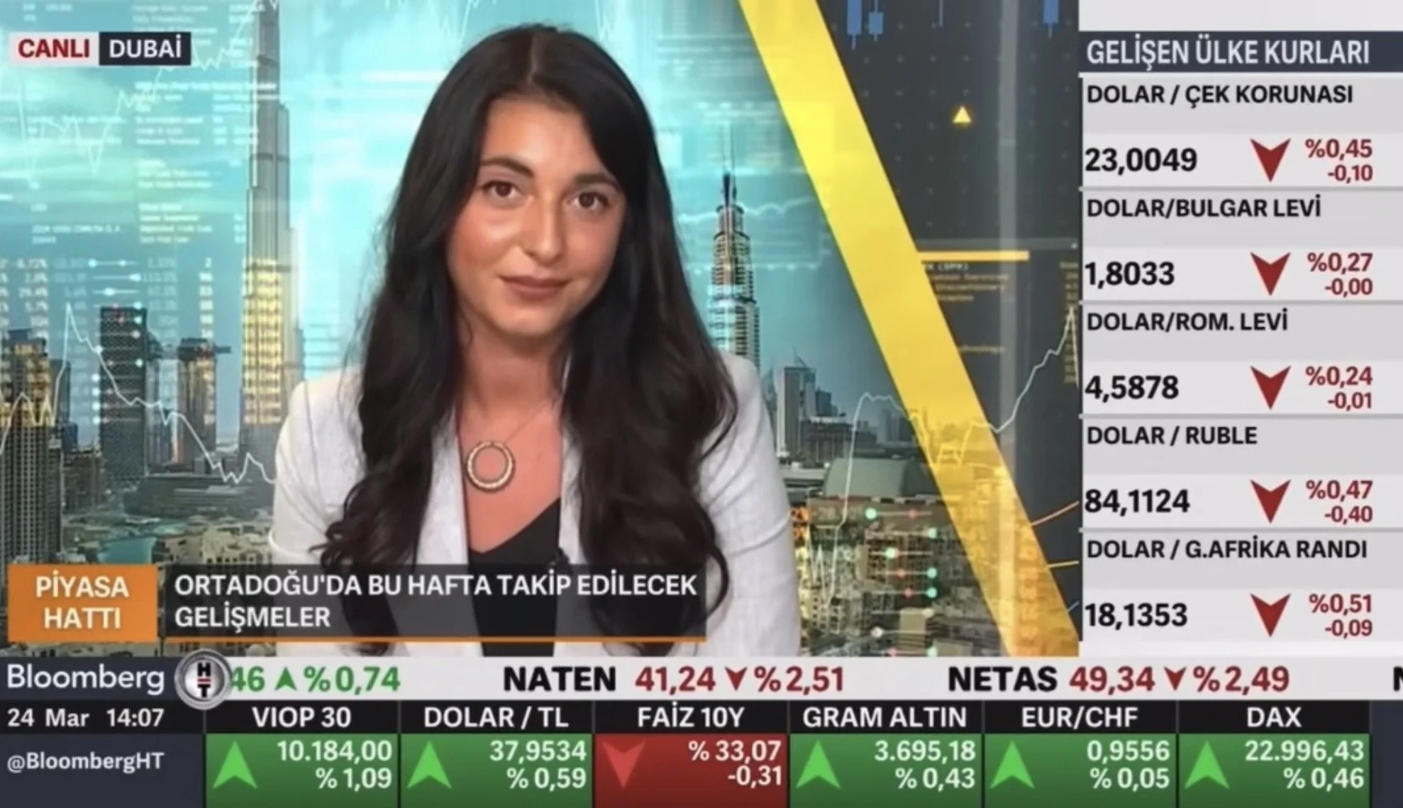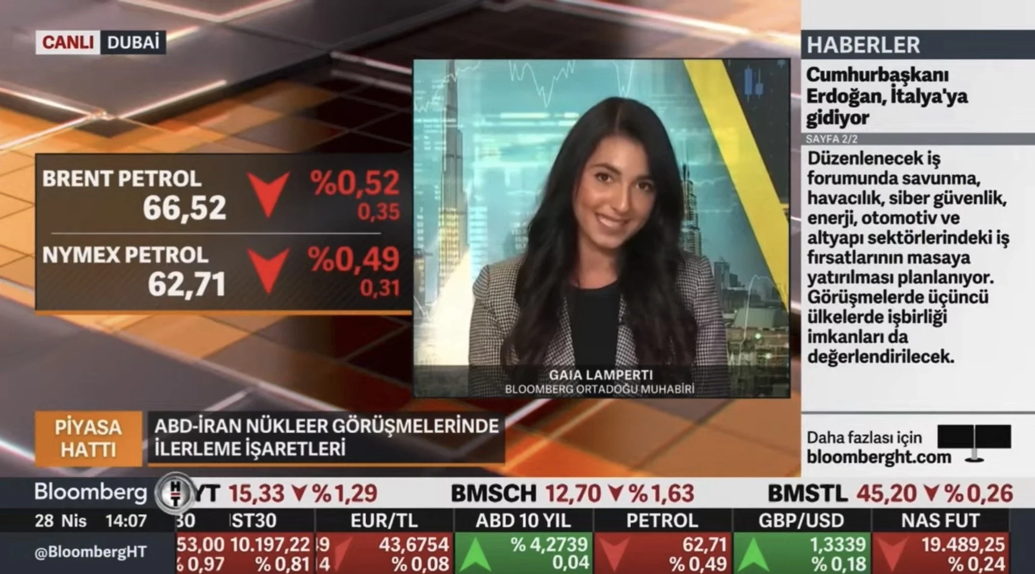 Weekly live hits for Turkish financial channel Bloomberg HT, headquartered in Istanbul. I regularly join current affairs show Piyasa Hattı (Market Line) to cover energy, geopolitical, and market stories from across the Middle East.